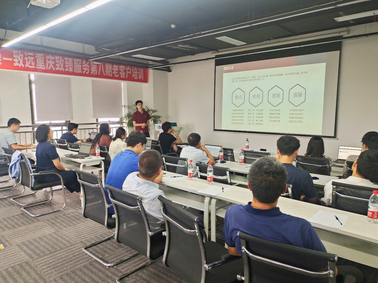 9月13日,致远互联重庆区举办了第八场致臻服务客户培训活动,此次培训围绕“公文管理制作分享与实操”展开。本次培训活动共吸引近20家客户到场,讲师详细讲解了公文CAP3以及公文CAP4的制作与维护,以帮助老客户能够更熟练利用平台进行公文管理与制作,提升其工作效率。