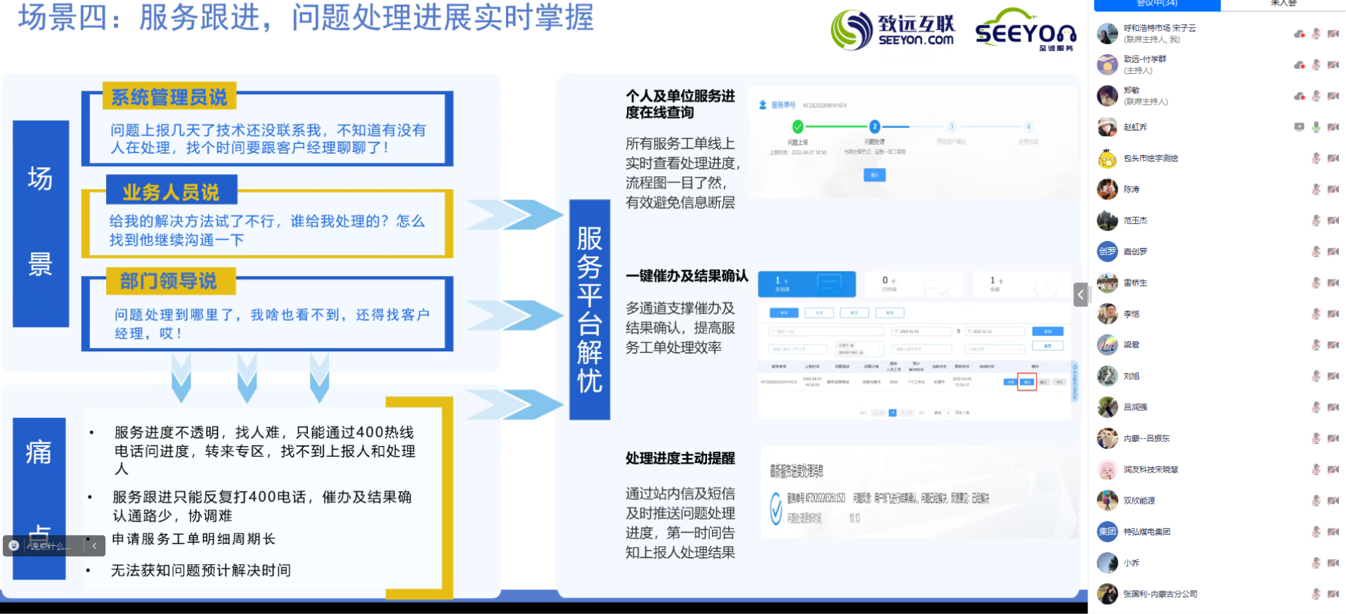 2023年10月20日下午致远内蒙区举办了老客户知识讲堂,近30家客户进行线上参会,我们有幸邀请到总部赵虹桥、郑敏两位老师,为我们会议进行老客户培训,赵虹桥老师对于客户服务云平台的整体功能介绍及价值进行细化讲解,郑敏老师针对安全防护工具方案进行深度解读,充分分析企事单位的关注焦点,把握痛点,从而介绍致远应用安全防护工具,使用致远协同办公系统如何加强安全防护等解决方案。