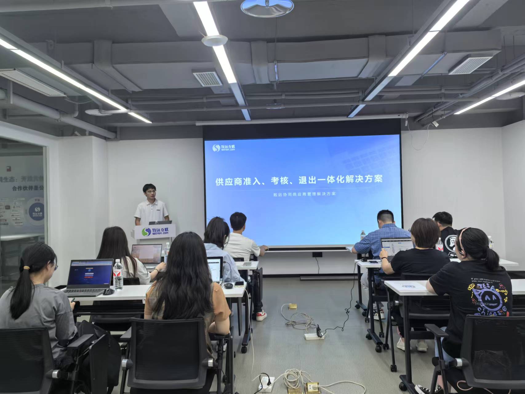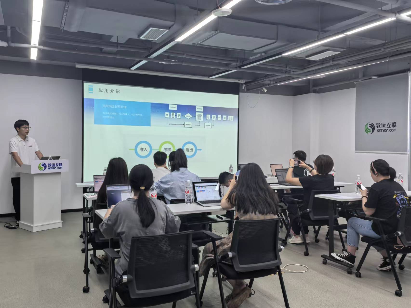 随后,致远互联重庆区项目经理令狐铠向大家详细介绍了致远协同供应商管理一体化解决方案,从供应商管理业务难点及建设需要,向大家阐述了供应商管理方案背景,紧接着,从采购综合管理业务逻辑-致远协同供应商管理应用架构-供应商准入、考核、退出等多维度详细介绍了致远互联供应商解决方案;讲解结束后,通过实操讲解及练习让到场嘉宾都自行搭建了供应商管理系统demo,并一对一解决了到场嘉宾的疑问。